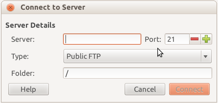 After moving your mouse to the top left File menu, select Connect to Server. A box will appear: here you can enter the data to connect to the remote server.