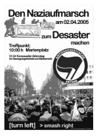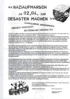 31. März: Mobilisierung gegen Naziaufmarsch 1. April: Europäischer Aktionstag für Bewegungsfreiheit und Bleiberecht 2. April: Naziaufmarsch zum Desaster machen 2. April: Antifa-Konzert mit "Verbrannte Erde" und "Tischlerei Lischitzki" im Cafe Marat. Ab 20.30h. Kommt in Gruppen! 12.-15. Mai: Nazikriegsverbrecher- gedenken in Mittenwald stören ![]() "Es ist legitim, ja legal, sich den Totengräbern der Demokratie entgegenzustellen" Martin Löwenberg