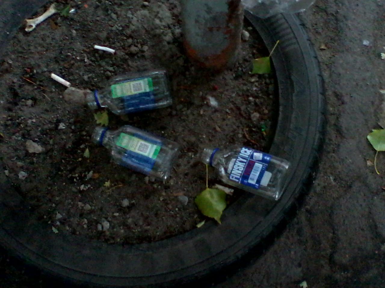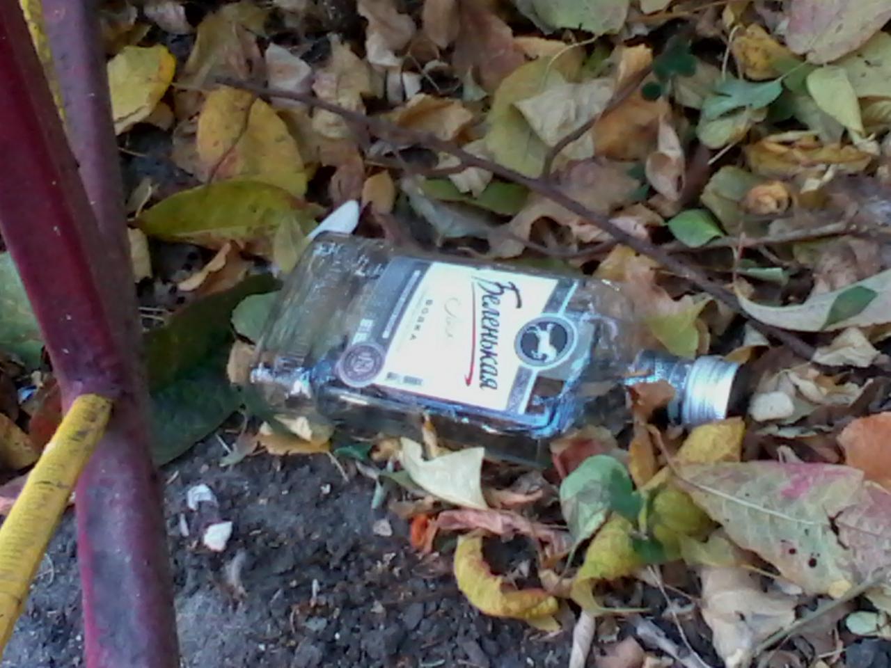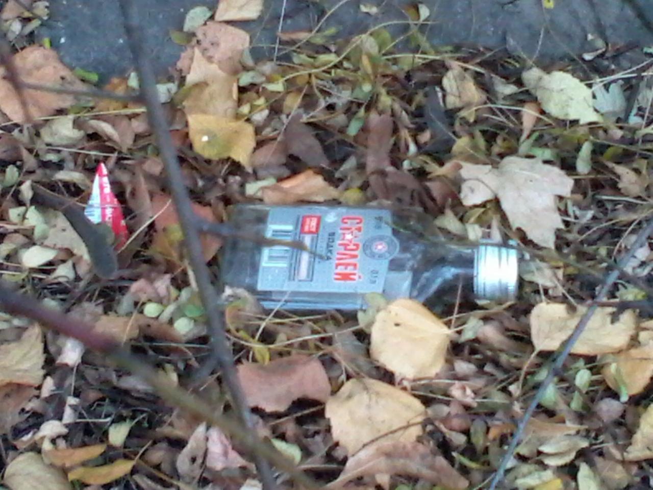 О степени поражения общества алкоголизмом можно составить приблизительное представление по насыщенности улиц города пустыми бутылками. При этом нужно иметь иметь ввиду, что я не хожу по городу целенаправленно в поисках объектов для фотографирования, но фотографию по оказии. Иными словами, я заснял лишь крошечную часть верхушки айсберга.